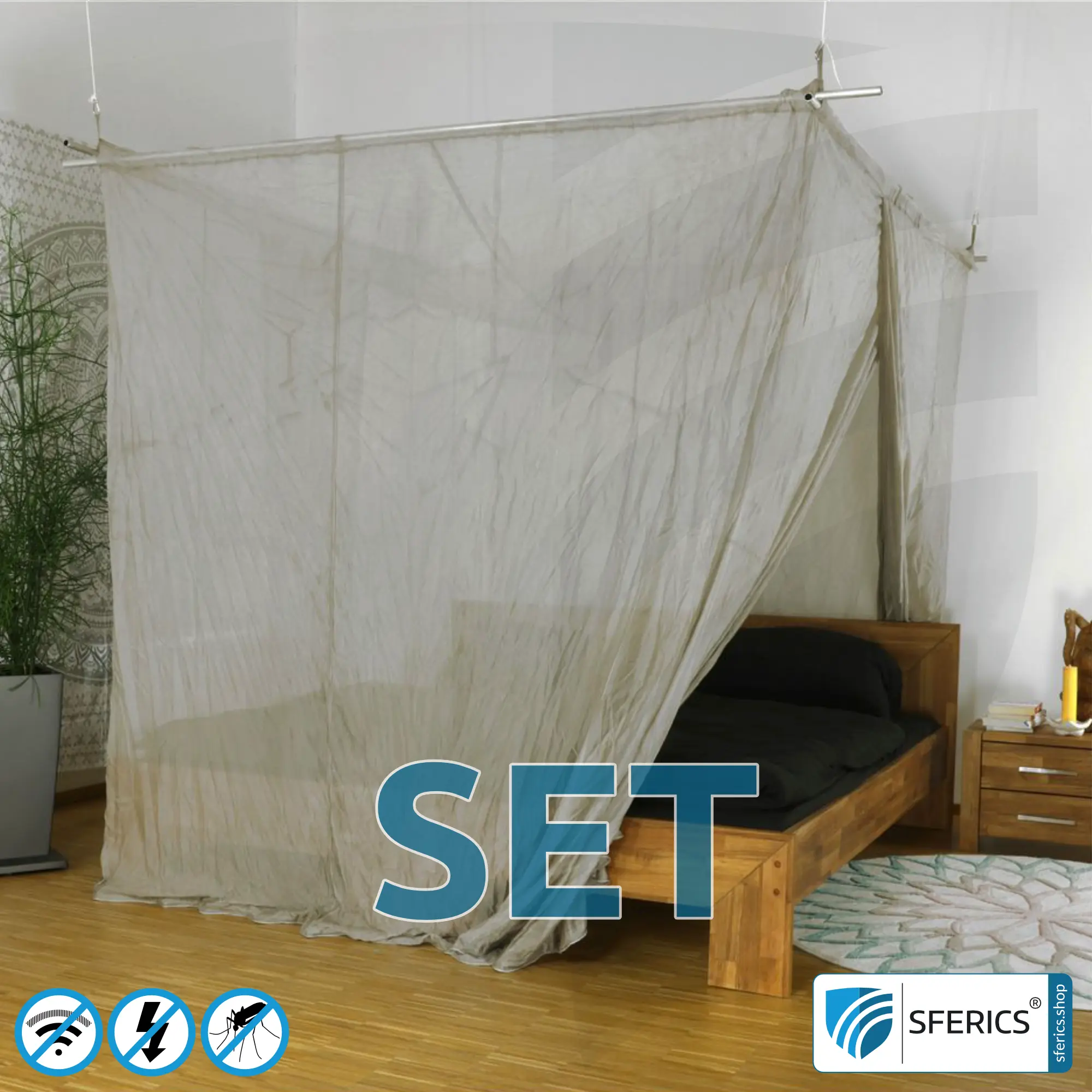 CANOPY ELECTROSMOG ULTRA in a set. Ideal for a DOUBLE BED or GRAND KING SIZE up to 180 x 200 cm in size. Maximum EMF protection against electrosmog HF and LF. Up to 48 dB shielding attenuation HF (efficiency shielding HF over 99,99%).
