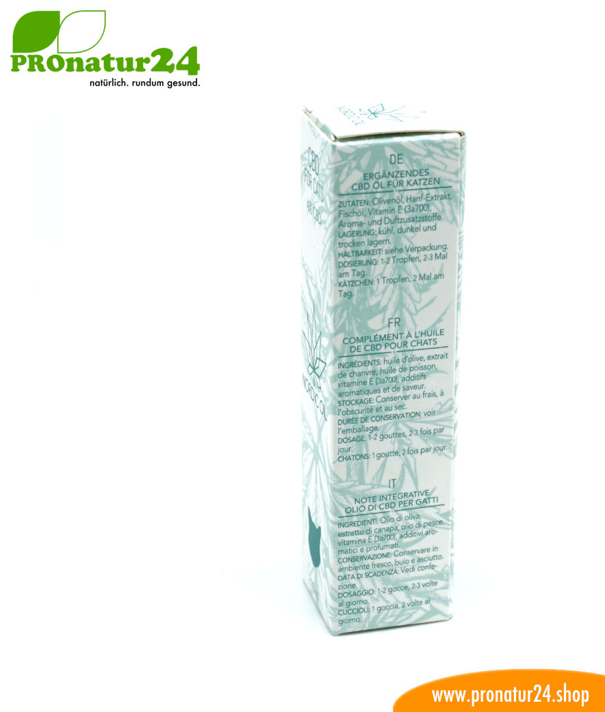With this CBD oil developed especially for cats, the beloved tiger tiger can now benefit from the positive effects of CBD. Cannabidiol of the hemp plant may be present in animals, among others. anti-inflammatory, anti-epileptic, antioxidant. Furthermore, CBD is also able to reduce pain and stress ie. This hemp oil with 4 percent CBD content can improve the health and well-being of the cat.