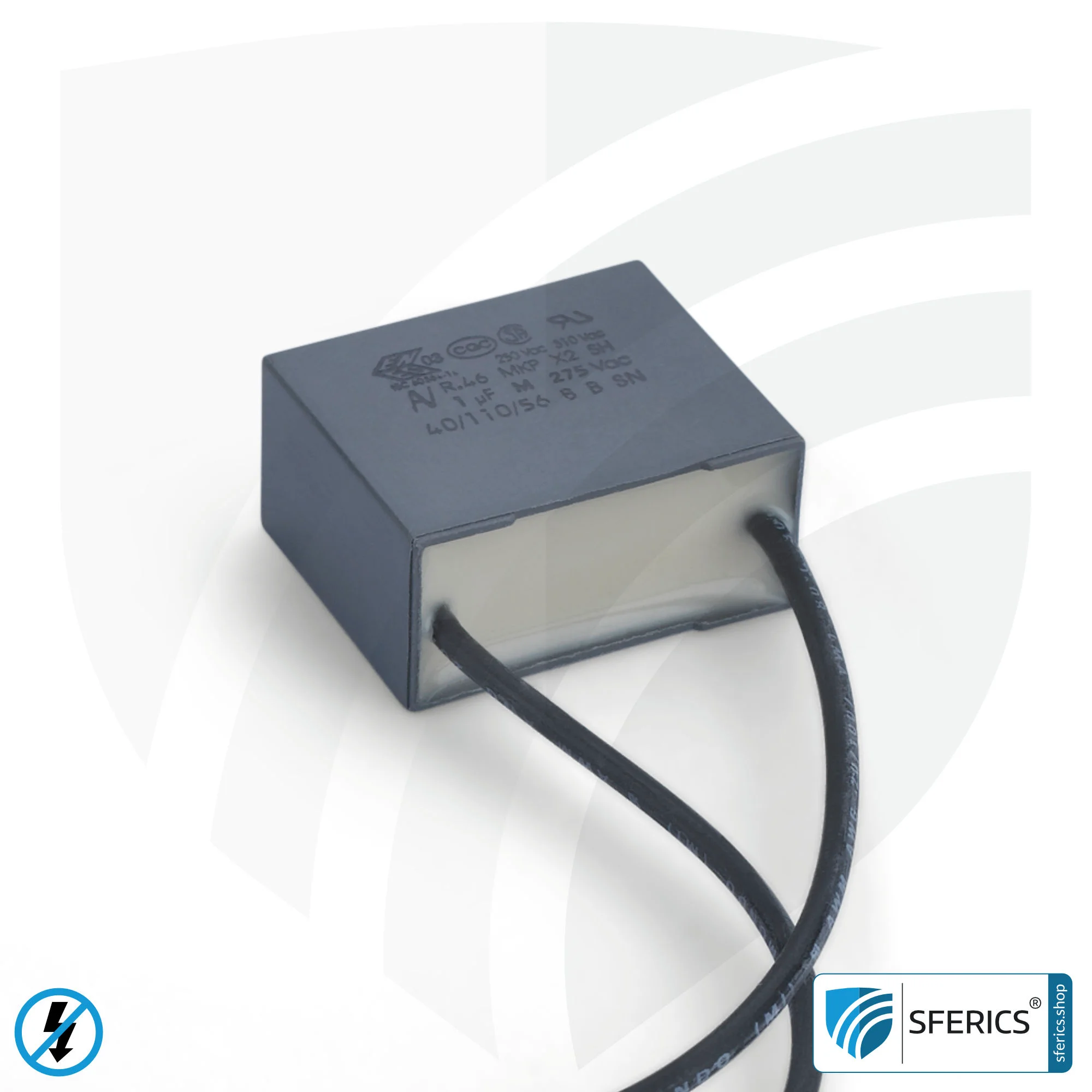 Hello. The 1 µF is only designed as a small capacitive filter for individual sockets, for example. Because of the potentially insufficient capacity, we point to the more efficient x25 variant with 4.7 µF – https://english.pronatur24.shop/buy/mains-filter-x25-dirty-electricity Please choose this one.