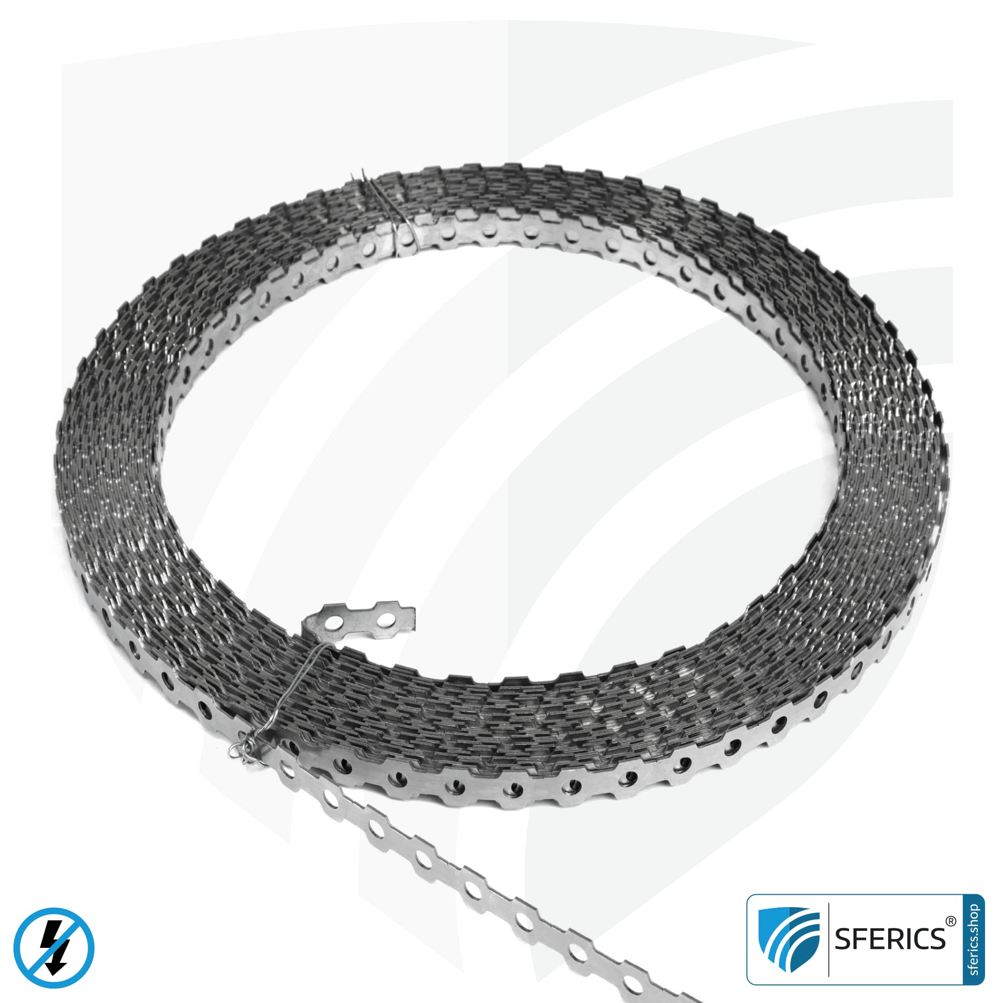 This stainless steel perforated tape is available in 2 lengths – 10 meters and 25 meters. It is intended for groundingGrounding is an electrically conductive connection with the electric potential of the ground. More electrically conductive surfaces using shieldingShielding is the protection from the effects of external fault zones and environmental influences (on a person's health most of the time). More reinforcement mesh, shielding stainless steel mesh or shielding shielding fleece. This metal strip is suitable for processing under plaster (e.g. under the parquet, laminate or plasterboard) and is basically ideal for earthing in drywall.