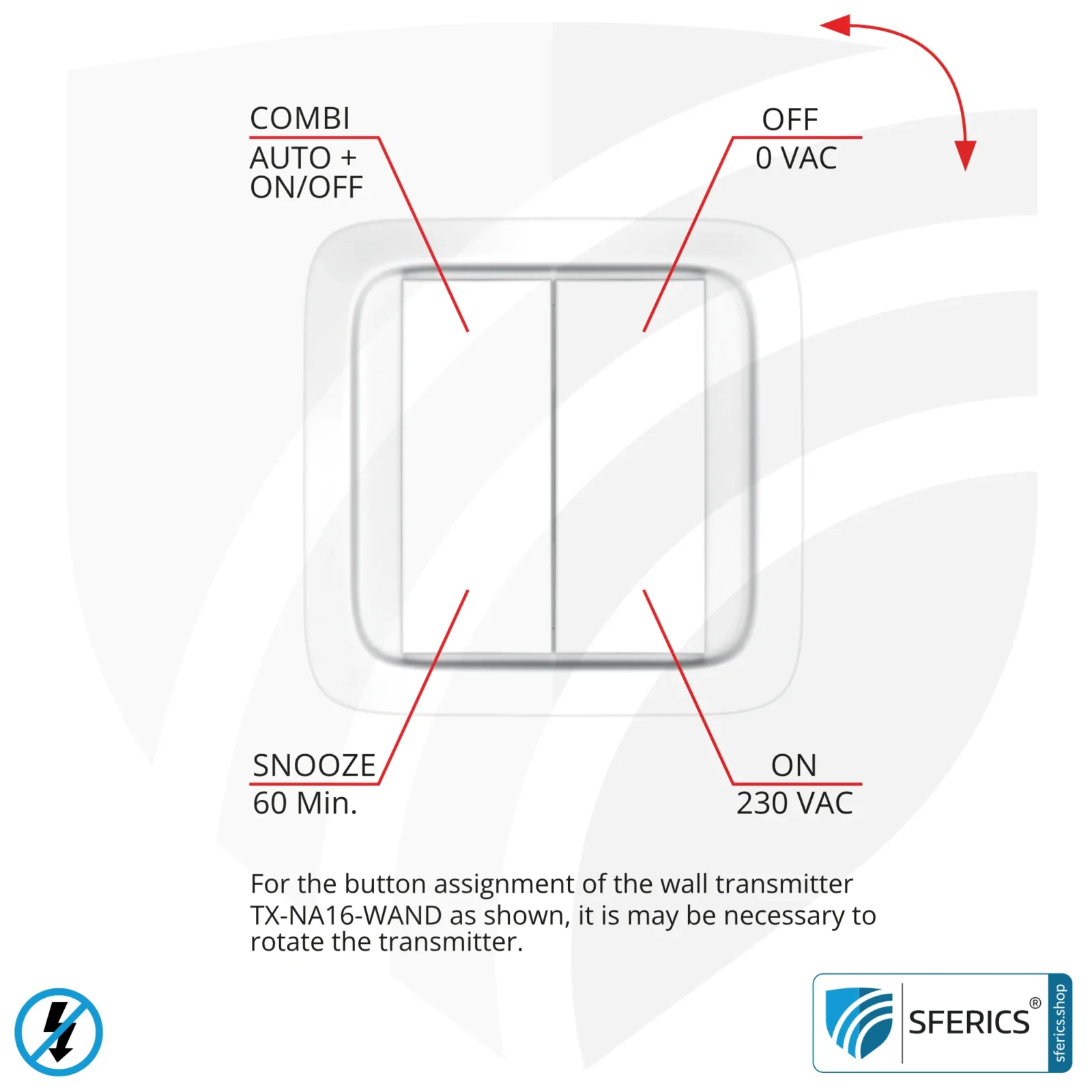With this control for the wall, a comfortable use of the demand switch NA 16-1P radio is directly possible, independent of location and thus not bound to a certain prepared room. The ingenious thing here is the radio technology used for this, called the EnOcean standard. Due to the low transmission energy required, the kinetic energy of the keystroke is sufficient to send a control telegram (data packet or radio signal) coded according to the EnOcean standard to the mains cut-off switch or repeater.